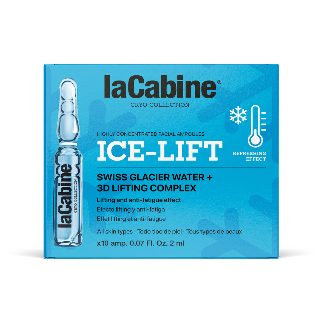 تُعد أمبولات لا كابين آيس ليفت علاجاً مبتكراً للوجه مستوحى من تقنيات العلاج بالتبريد (Cryotherapy). صُممت هذه الأمبولات بتركيبة تحتوي على مياه الجليد السويسرية ومركب الشد ثلاثي الأبعاد (3D Lifting) لتنعش البشرة فوراً، وتمنحها تأثيراً مشدوداً ومقاوماً لعلامات التعب، مما يترك وجهكِ بمظهر أكثر نعومة، شباباً، وراحة.